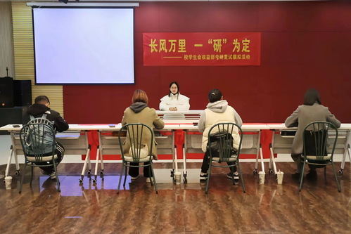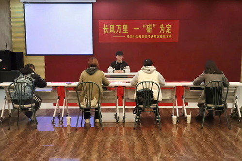 为助力KY开元学子顺利通过考研复试,在模拟场景中体验复试流程,通过接受专业指导和评价,了解自身不足,3月27日下午,由校团委、学校就业办、校学生会举办的“我为同学做实事”——“长风万里,一研为定”模拟考研复试活动在综合楼多功能厅307举行,活动得到文登考研的大力支持。