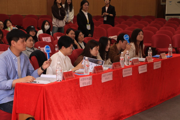 苏宁财务共享中心主任杨昱颖、中兴财光华会计师事务所南京分所行政主管朱兆君、上海星巴克咖啡经营有限公司伙伴资源经理夏素敏、江苏顺丰速运有限公司招聘经理游伟波、江苏歌德创业服务集团市场经理张辰玮、经济管理学院分团委书记潘天娇担任本次决赛的评委,经济管理学院党总支书记李清源、综合办主任程希羲、全体辅导员以及200余名师学生共同观看了比赛。