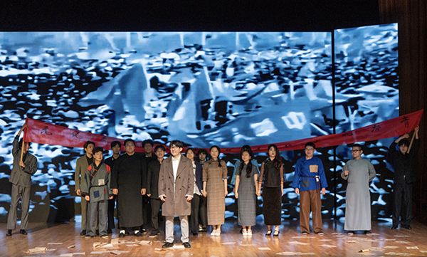 话剧《青春之歌》以长篇小说为蓝本,精心改编,讲述了一群青年知识分子在新民主主义期间投身革命的故事,几个年轻人通过不同的思考、选择,构筑了革命历史的经典叙事,揭示了知识分子成长道路的历史必然性。青年学生们冲破封建枷锁,积极投身党的革命事业,在重重考验中成长为坚定的革命者,用鲜血和生命诠释了青春的深刻含义。跌宕起伏的故事情节、形象生动的人物形象,让现场观众感受到了身处动荡年代的青年知识分子满腔爱国的热情、英勇无畏的气概、奋勇拼搏的精神,大家都为之动容,掌声经久不息。