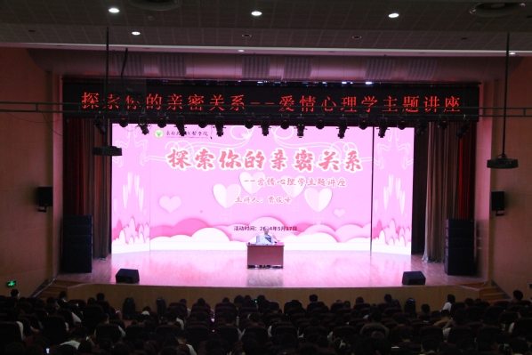 5月17日晚由学生处、校团委主办,校学生会外联部承办的“探索你的亲密关系”为主题的爱情心理学主题讲座在KY开元综合报告厅举行,此次主题讲座为同学们树立正确的恋爱观和择偶观打下了良好的基础,增强了他们面对情感问题的承压能力和处理技巧,有效促进了学生全面发展。
