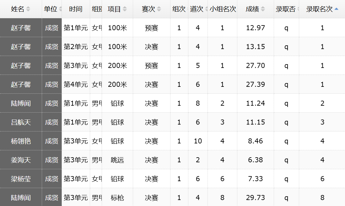 电子与计算机工程学院 陆博闻 男子甲组标枪 第八名
