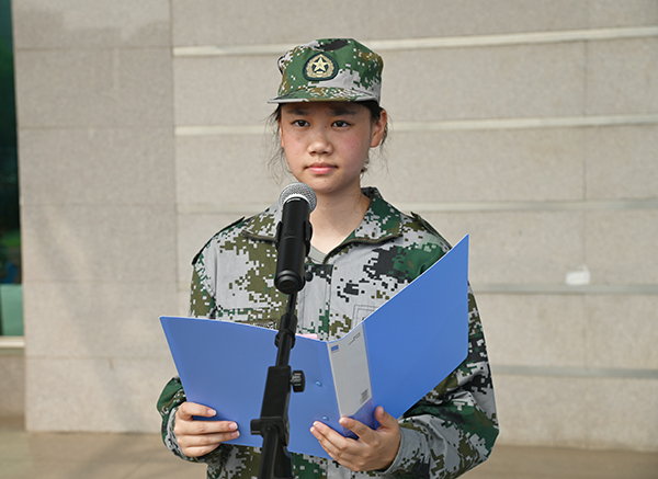 2024级学生军训团团长唐复邦在讲话中高度认可本次新生军训展演,并向顺利完成本次军训的同学们表示祝贺,向学院各级领导与教职员工表示感谢。他希望同学们把军训成果尽快转化为努力学习、刻苦钻研的强大精神动力。