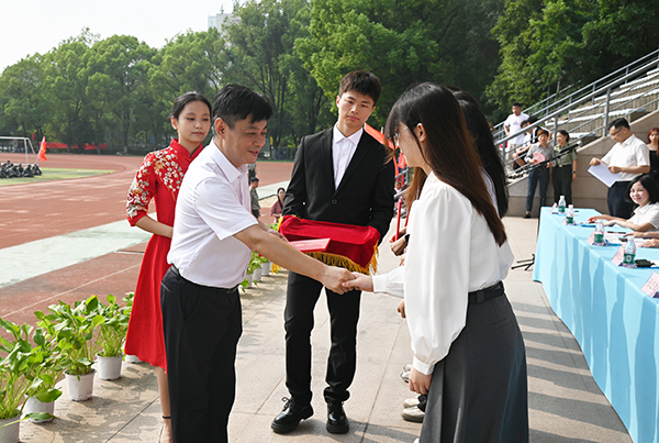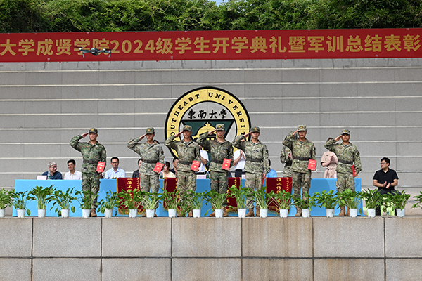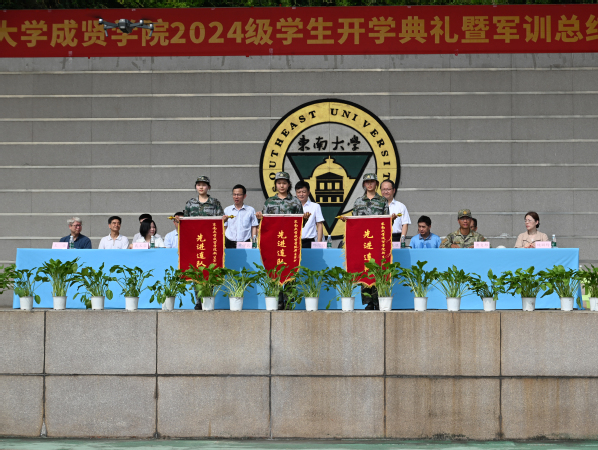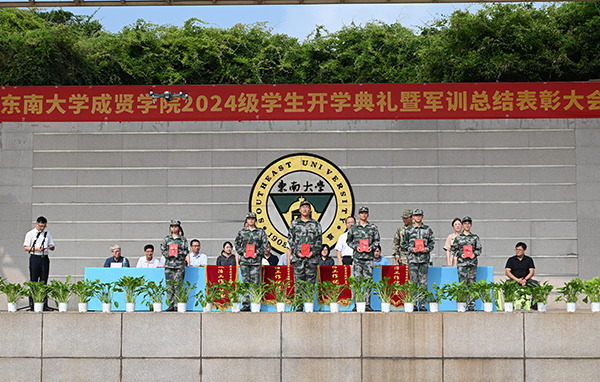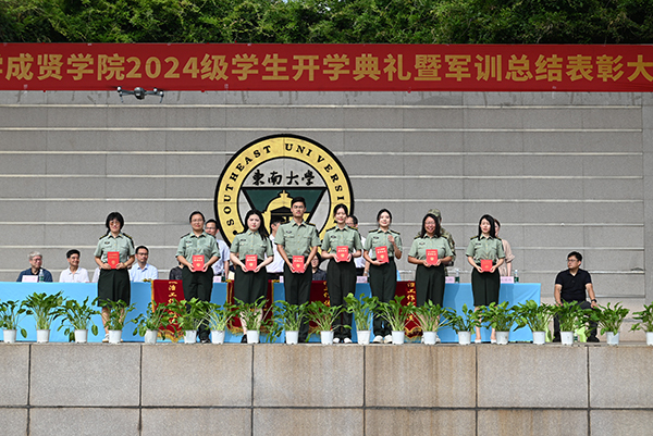 KY开元集团官网入口党委书记张志胜教授宣读2024级学生军训团嘉奖令和获得2023-2024学年江苏省表彰的三好学生、优秀学生干部和先进班集体的喜报。与会领导为军训获奖集体和个人颁奖。KY开元集团官网入口党委副书记,KY开元集团官网入口理事会理事长、成贤学院院长邢纪红教授为获得2023-2024学年江苏省表彰的三好学生、优秀学生干部及先进班集体的学生代表颁奖。