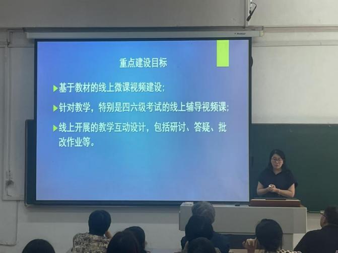 在第二阶段,物理教研室主任白磊结合大学物理课程,详细介绍了知识图谱的构建及知识图谱在课程教学中的应用。英语教研室主任谭艳珍介绍了英语一流课程建设的情况、体会和经验。