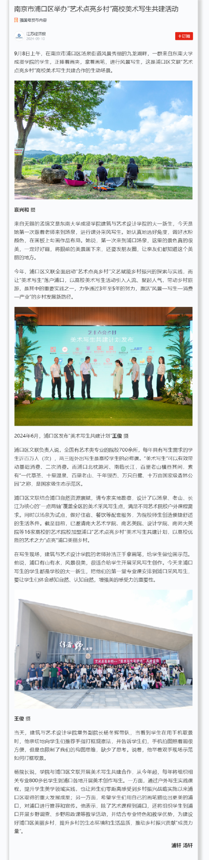 【江苏经济报】南京市浦口区举办“艺术点亮乡村”高校美术写生共建活动