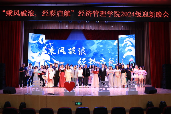 9月23日晚,由经济管理学院分团委学生会举办的2024年“乘风破浪,经彩起航”迎新晚会隆重举行。经济管理学院党总支书记李清源、副院长孙亮、综合办主任程希羲、分团委书记潘天娇、2024级辅导员以及全体新生欢聚一堂,共赴这场又暖又燃的青春盛会。