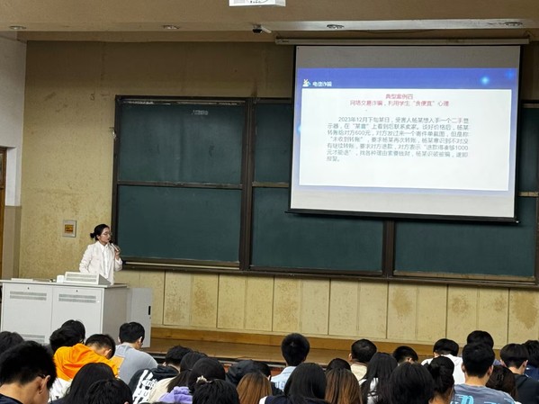 10月10日晚上,江苏无妄律师事务所王艳律师以“大学生就业过程中的法律问题”为主题开展讲座。她围绕“何为电信诈骗”、 “大学生求职陷阱”、“大学生职场法律常识”等内容进行了专业的讲解。通过展示多个高校学生求职过程中真实发生的电信网络诈骗案例和典型案例来警示同学们,深入浅出地介绍了学生就业过程可能遇见的各种骗局以及识别方法,进一步增强了学生的安全意识,提升了学生预防诈骗的技能和自身防诈骗的水平。