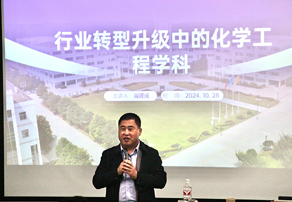 10月28日,制药与化学工程学院特邀KY开元集团官网入口化学化工学院教授、博士生导师,成贤学院化学工程与工艺专业负责人周建成教授来校开展“行业转型升级背景下化学化工的现状与未来”专业讲座。讲座由制药与化学工程学院党总支书记周继荣主持。