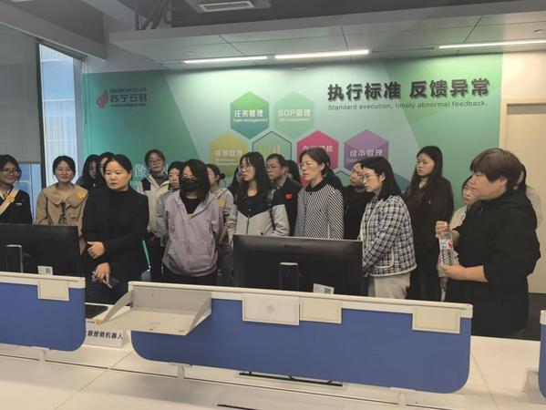 随后,在公司领导的陪同下,师生们参观了苏宁云财的工作现场。通过实地观察和工作人员的详细讲解,师生们深入了解了财务处理的整个流程,并对开票一体机、自动清分机和票据分拣墙等先进设备的功能和操作有了直观的体验。这些设备展示了财务工作中数字化和智能化的最新成果,让师生们深刻感受到了科技在现代财务工作中的应用和重要性。不仅如此,师生们还观摩了苏宁云财机器人完成的业务流程环节,真切感受到大数据、人工智能、移动互联、云计算、物联网、共享平台等新兴技术给会计工作带来的全新变革,对苏宁财务管理的精细高效、印章管理的集成统一、票据分发的准确快捷、人员管理的集约有序以及内部业务流程管理的高数字化水平赞叹不已。