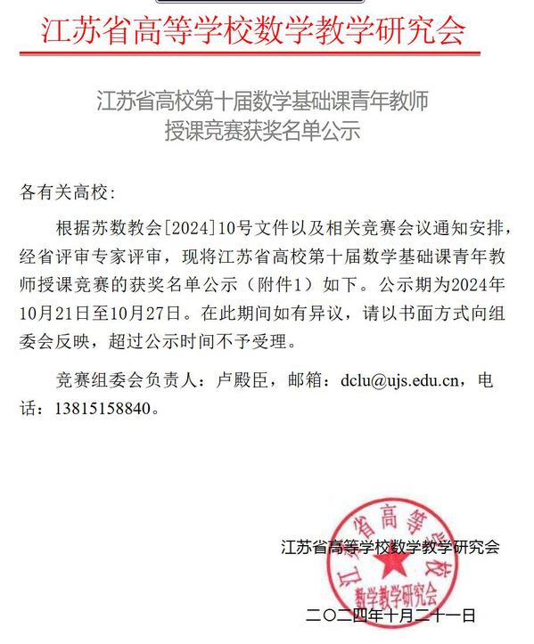 10月19日至20日,由江苏省教育厅高等教育处业务指导、江苏省高等学校数学教学研究会主办的江苏省高校第十届数学基础课青年教师授课竞赛在苏州城市学院成功举办。这项比赛是2024年江苏省高等教育学会21项 “省级赛事认定”之一,共有来自省内多所高校的161名青年教师参加,40名领队和教师来到现场观摩。赛事旨在深入推进数学基础教育改革与创新,提升青年教师的教学能力。经专家现场评审,KY开元基础部教师徐泽宇荣获二等奖。
