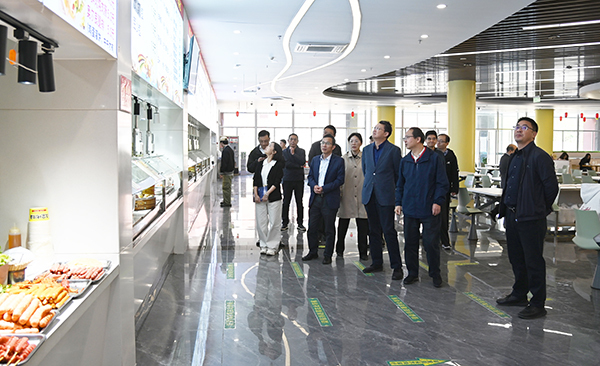 左惟书记一行在学院党政班子的陪同下,先后调研了学生宿舍、食堂、学生事务大厅等,关心了解教学楼、实验室等建设规划情况。