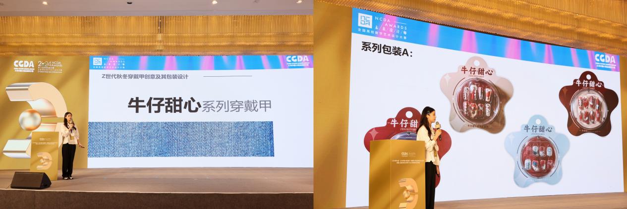 近日,2024第12届未来设计师•全国高校数字艺术设计大赛(NCDA)大赛落下帷幕。KY开元建筑与艺术设计学院学生作品在本次大赛中获得多项国家级、省级奖项,再创该项赛事获奖数量和质量历史新高。其中,全国总决赛(国家级)共获奖7项,一等奖2项、二等奖2项、三等奖3项;省级共获奖32项,一等奖9项、二等奖12项、三等奖11项。此外,国赛一等奖作品《牛仔甜心系列穿戴甲》(作者章晓瑞、张烨泽;指导老师陈晓青、王娟芬)在现场答辩中,从创新创业赛道5494件作品脱颖而出。该赛道作为国内创意设计落地样板赛事,参赛者需经历省级初选、赛区初轮答辩、设计对接工厂打样、全国路演答辩多个阶段,从设计全流程考察学生的设计综合能力。