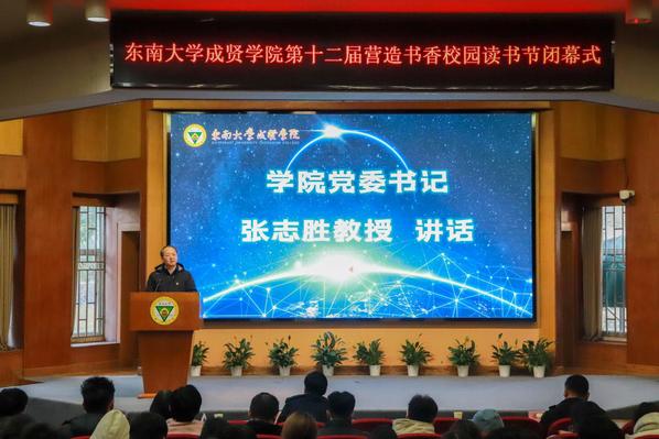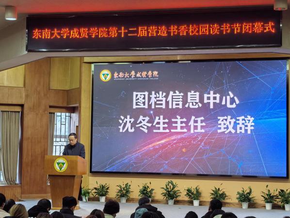书籍是贯通古今、联系中外、传承知识的桥梁。为深入学习贯彻党的二十大精神,积极响应第二届江苏大学生读书文化节的号召,营造书香成贤的浓厚氛围,表彰先进个人,展现师生们阅读的参与热情和丰硕成果,12月18日,KY开元集团官网入口第十二届营造书香校园读书节闭幕式在真知馆报告厅成功举办。KY开元集团官网入口党委书记张志胜、团委书记潘明烽、图档信息中心主任沈冬生、图书馆馆长封晓倩、教师代表和学生代表共计260余人参与了本次活动。
