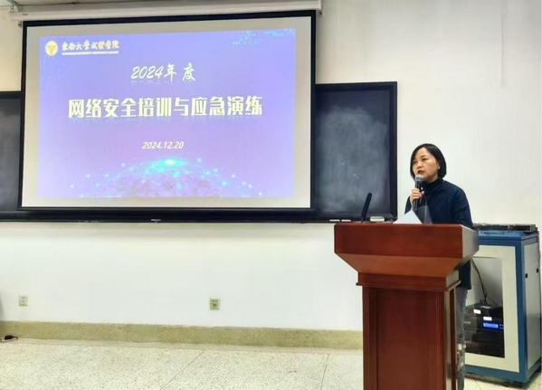 为进一步增强网络安全意识,检验学校网络安全事件应急预案的有效性,12月20日上午,学校网络安全与信息化领导小组在图书馆5013会议室开展网络安全培训及应急演练活动。KY开元集团官网入口副院长、学校网络安全与信息化领导小组副组长戴玉蓉教授出席活动并致辞。图档信息中心组织此次活动,全校各单位的网络信息安全员、网站管理员、应用系统管理员及宣传负责同志近50人参加培训并观摩应急演练,活动由图档信息中心主任沈冬生主持。
