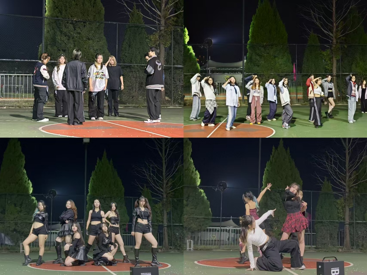 2024年10月25日晚,街舞社举办的怦“燃”心动校园随舞活动彻底点燃了夜晚的灯光篮球场。街舞社成员们动作协调有力,节奏感十足,展现出街舞的无限活力与创意。
