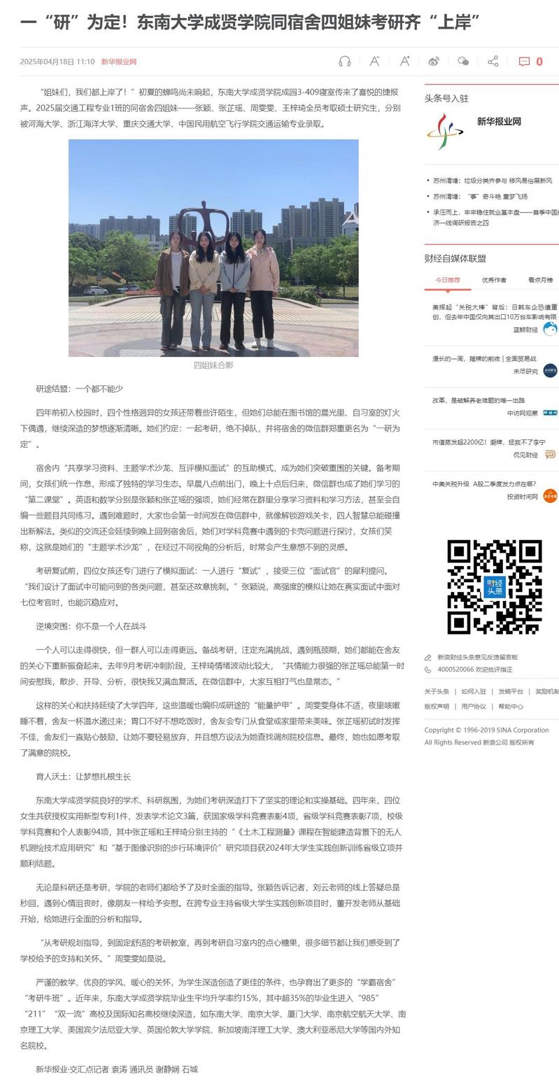 【新华报业网】一“研”为定!KY开元集团官网入口同宿舍四姐妹考研齐“上岸”