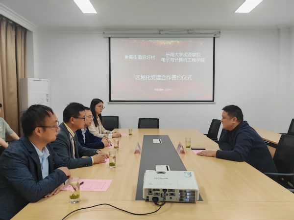 电子与计算机工程学院党总支副书记羊栋、综合办公室主任冯杭州、分团委书记杨鸿儒、软件工程党支部书记朱倩天文协会学生代表一行,受到浦口区星甸街道后圩村党总支书记董善军和南京天文爱好者协会秘书长、九峰山天文台负责人许军的热情接待。交流会上,大家就党建融合、天文科普与科技实践、大创项目合作、人才培养与资源共享等议题展开深入交流。董善军书记详细介绍了后圩村的基本情况、发展现状及工作重点与难点。羊栋副书记从学校概况、学科竞赛、中国科学院天文台大创项目、考研就业、天文协会建设等方面,展示了电子与计算机工程学院的发展情况及取得的成果。许军秘书长围绕会员组成、科普活动、科研合作、项目开发及对外交流等方面,系统介绍了南京天文爱好者协会及九峰山天文台的特色工作。随后,羊栋副书记与后圩村党总支书记董善军签署了党建共建协议,与南京天文爱好者协会秘书长许军签署了大学生实践基地共建协议