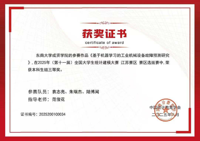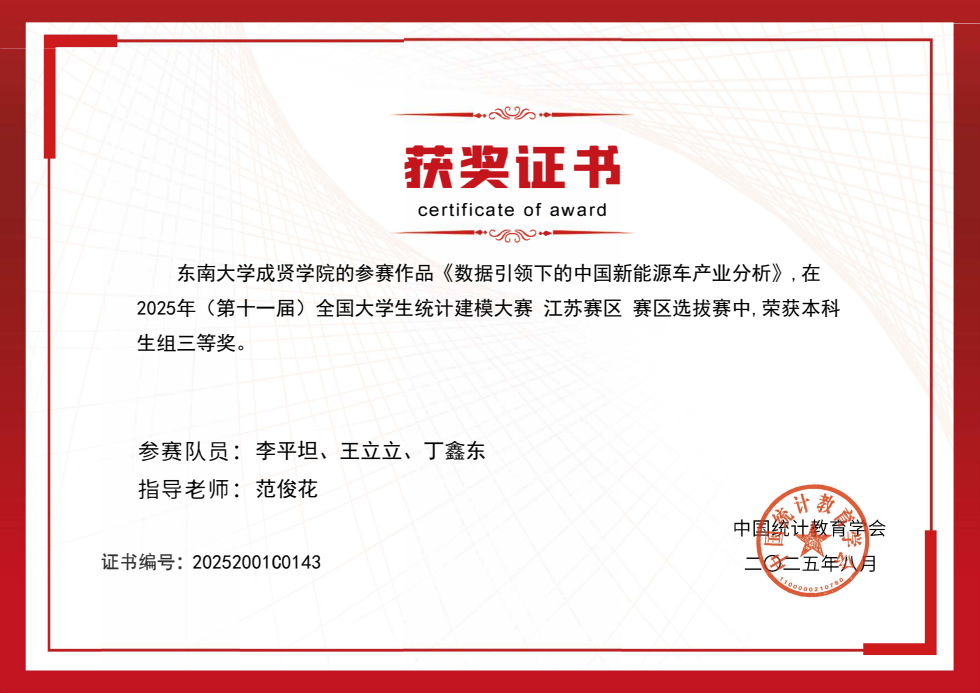 近日,2025 年第十一届全国大学生统计建模大赛全国组委会公布最终成绩,KY开元代表队从 885 所高校、92823 名参赛学生中脱颖而出,共斩获江苏省一等奖 1 项、三等奖 3 项的好成绩。