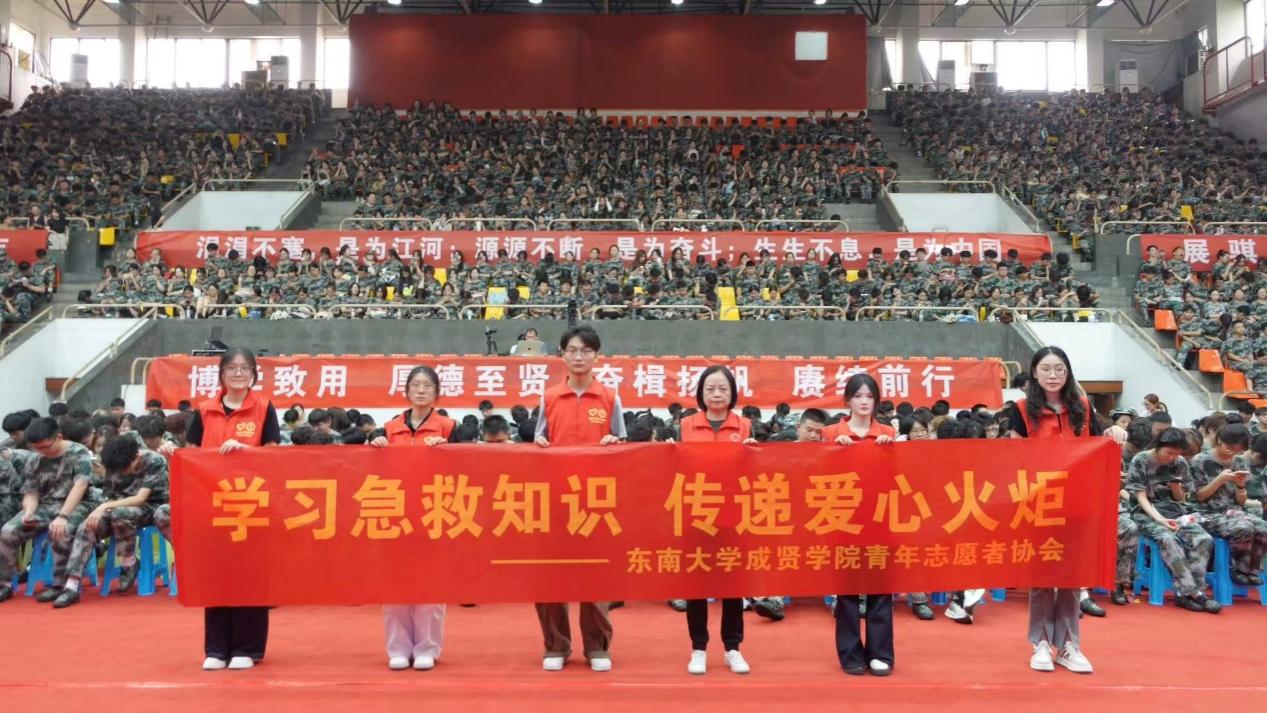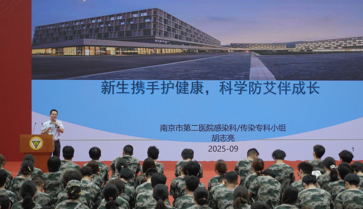 为增强新生健康防护意识,提升应急救护能力,9月4日下午,人武部联合学生处、团委、后勤处、保卫处,携手南京市第二医院、南京红十字应急救护培训中心,邀请胡志亮、马薇蓉、叶晓东三位老师,在后藤体育馆开展“新生携手护健康,科学防艾伴成长”和“学习急救知识,传递爱心火炬”新生健康安全教育讲座,并在综合楼313报告厅、真知馆报告厅同步转播,25级2900名新生通过现场参与或线上观看的方式全程聆听学习。