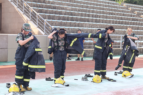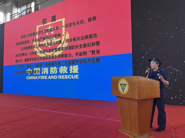 9月5日,消防宣教演练活动举办,活动内容包括消防抢险救援器材体验和消防应急疏散演练。体验活动在田径场进行,高新消防救援大队陈明宇介绍了常见消防器材的使用方法,消防员们进行了现场演示,学生们积极踊跃地参与了现场实操。应急疏散演练在新生宿舍进行。演练开始前,保卫处人员简要介绍了演练方案以及疏散逃生的方法要点和注意事项。随着模拟“火情”的警报鸣响,学生在工作人员的指引下,弯腰捂住口鼻,快速有序地按照逃生路线撤离到空旷地带。同时,消防车到达现场,消防员在工作人员的协助下完成楼内人员搜救及清点等工作,最终全部人员安全疏散,整场活动井然有序。