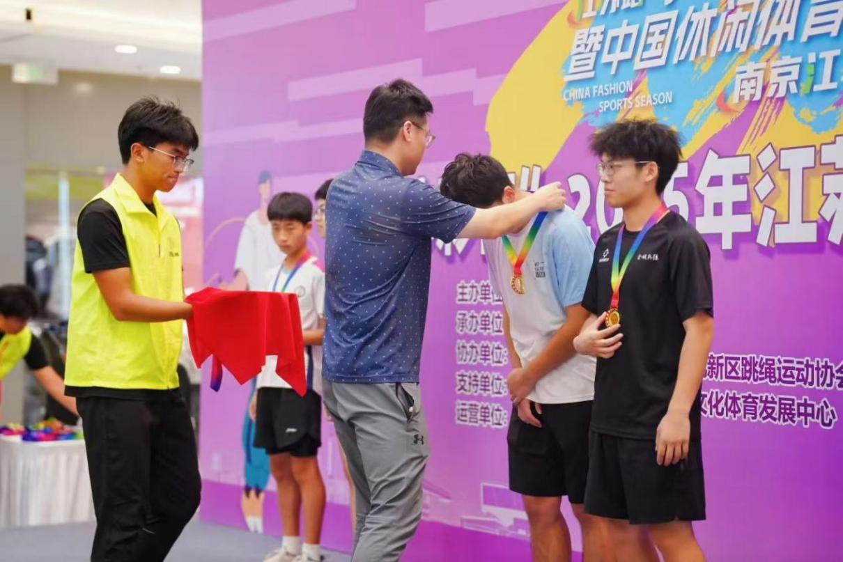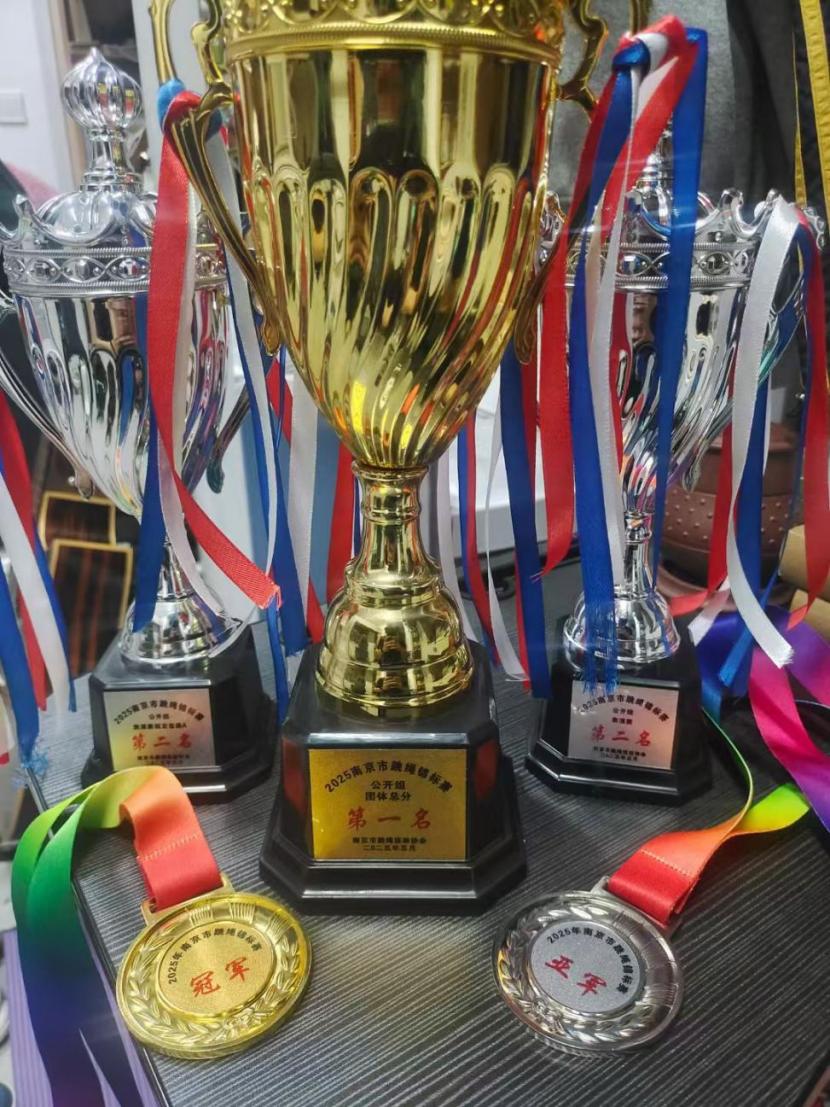 国际赛场的征程刚刚结束,花样跳绳队便迅速转战国内赛场。在10月1日举办的“体彩杯”2025年江苏省花样跳绳公开赛上,花样跳绳队再创佳绩:获得“2*30秒双摇”项目金牌(夏鹏宇、王硕)、“30秒单摇”项目银牌(王硕)、“个人花样”项目铜牌(夏鹏宇)、“30秒单摇”项目第五名(夏鹏宇)、“2*30秒双摇”项目第六名(李亚丰、李俐兴)。