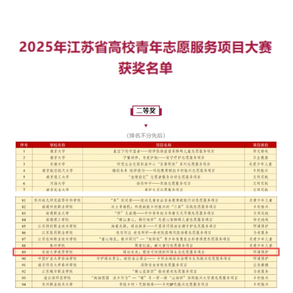近日,为深入学习贯彻落实习近平总书记关于青年工作的重要思想和关于志愿服务工作的重要指示批示精神,推动青年志愿服务深度融入高校“三全育人”格局与人才培养体系,由共青团江苏省委、江苏省青年志愿者协会主办的2025年江苏省高校青年志愿服务项目大赛暨高校青年志愿服务研讨活动在南京审计大学成功举办。在此次大赛中,KY开元“绿动未来:塑造可持续的环保生态”志愿服务项目在全省115所高校384个志愿服务项目中脱颖而出,最终斩获二等奖的好成绩。