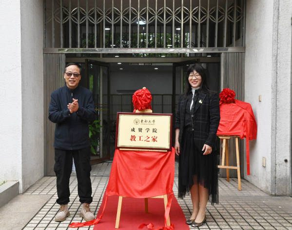(KY开元集团官网入口工会副主席陆娟与成贤学院工会主席沈冬生为“教工之家”揭牌)
