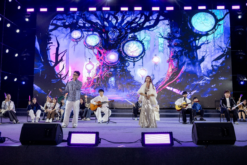 第二篇章“新Young启航·逐梦成贤”以“成长”为题,用热爱诠释逐梦的坚定。舞蹈《开天》以极具张力的舞姿,演绎青春无畏的闯劲;歌曲串烧《胡广生》《倔强》在深情叙事与励志呐喊间切换,唱出青年的赤子之心;器乐《金陵四季》用旋律勾勒古都南京的四季盛景,让地域文化与校园情怀相融;2025级新生辅导员惊喜亮相舞蹈《爱你》,用灵动舞姿传递温暖期许;歌舞《天地龙鳞》更以恢弘气势展现祖国山河的壮阔与社会和谐的图景,将现场氛围推向高潮。