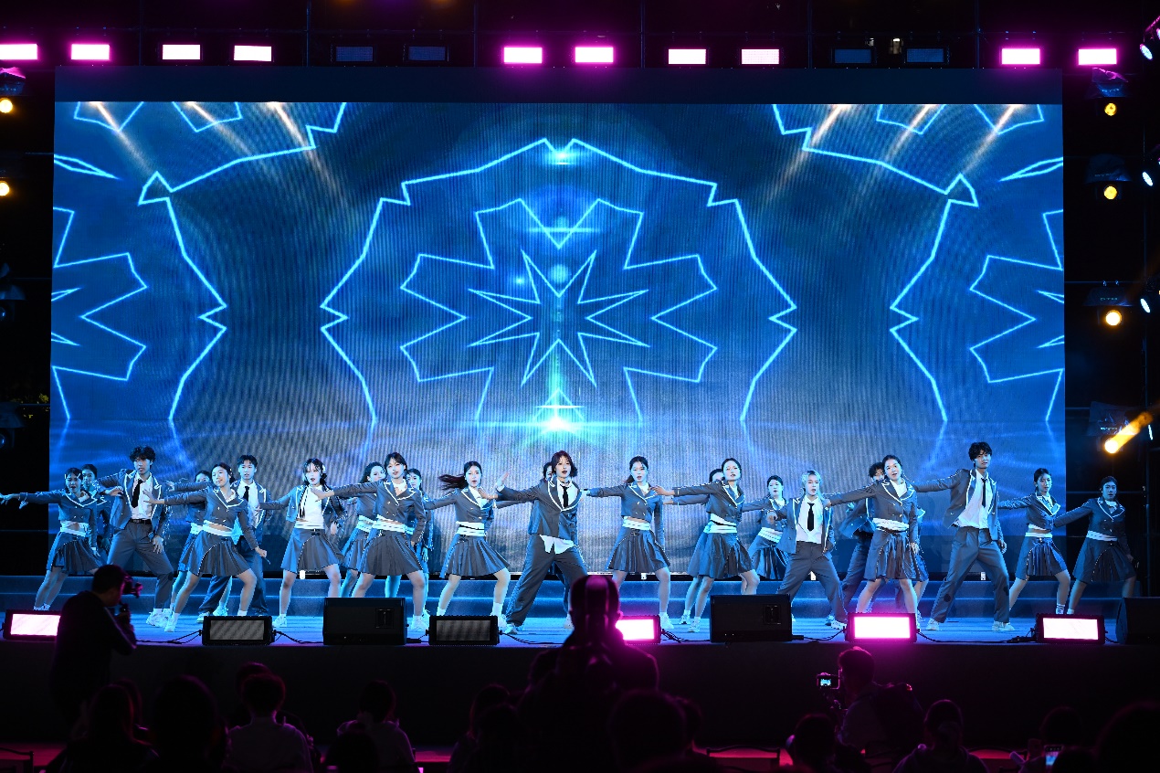 第一篇章“拾光筑梦·初见成贤”以“相遇”为核,用艺术勾勒初见的美好。歌曲串烧《爱就一个字》《她来听我的演唱会》用温柔旋律传递真挚情感,现代舞串烧《Psychic》《16 Shots》以强劲节奏展现青春张力;器乐合奏《知否知否》婉转悠扬,让古典韵味萦绕夜空,《社团秀》则以多元形式呈现校园文化的鲜活魅力;拉丁舞《马战之王》融合优雅与力量,情景剧朗诵《永不消逝的电波》更以深沉的家国情怀叩击人心,让新生在艺术熏陶中初识成贤精神。