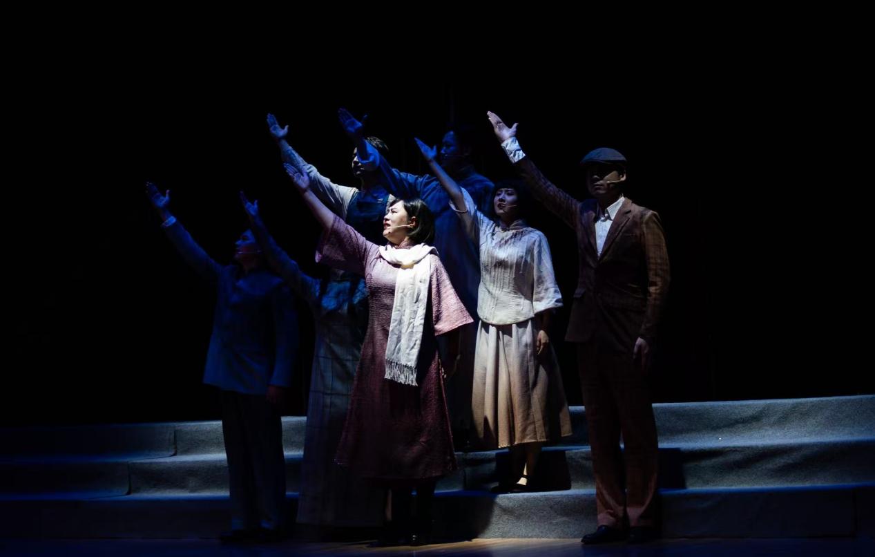 本次上演的情景组歌《雨花台信仰的力量》作品结构宏大、风格庄严恢宏,通过序曲和《信仰》《气节》《情怀》三大篇章及尾声共15首曲目,构筑了一场跨越时空的精神对话。演出在艺术呈现上独具匠心,融合合唱、独唱与情景表演等多种形式,在紧扣主题的同时兼顾风格的多样化,极大增强了作品的感染力与视觉冲击力。剧中通过章节式情景歌曲,集中展现邓中夏、恽代英、袁咨桐等12位雨花英烈的感人事迹,以戏剧化手法再现他们在狱中坚贞不屈、为信仰献身的壮烈场景,深刻诠释了中国共产党人崇高理想信念、高尚道德情操、为民牺牲的大无畏精神,也传递出新时代青年继承先烈遗志、赓续红色基因的坚定信念。