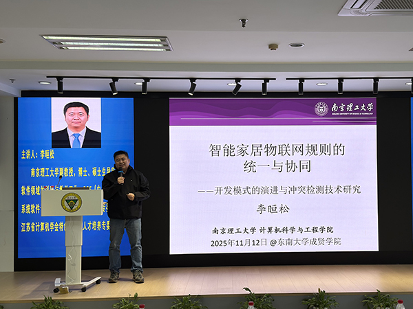 为聚焦学科前沿动态,深化师生对智能家居物联网技术的认知,11月12日,电子与计算机工程学院特邀南京理工大学李晅荣副教授,求真・求美・创新工坊开展了《智能家居物联网规则的统一与协同——开发模式的演进与冲突检测技术研究》专题讲座。本次讲座吸引了学院200余名师生到场聆听。