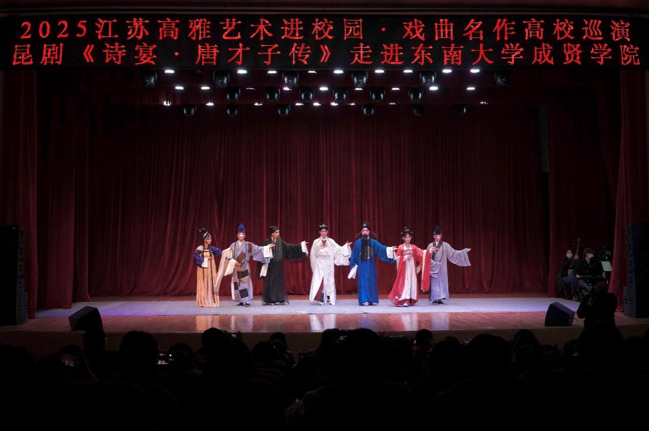 11月20日晚,江苏省高雅艺术进校园活动——江苏省演艺集团昆剧院原创昆剧《诗宴・唐才子传》在KY开元综合楼报告厅精彩上演,部分教职工及610名同学共赴一场跨越千年的“诗宴之约”。