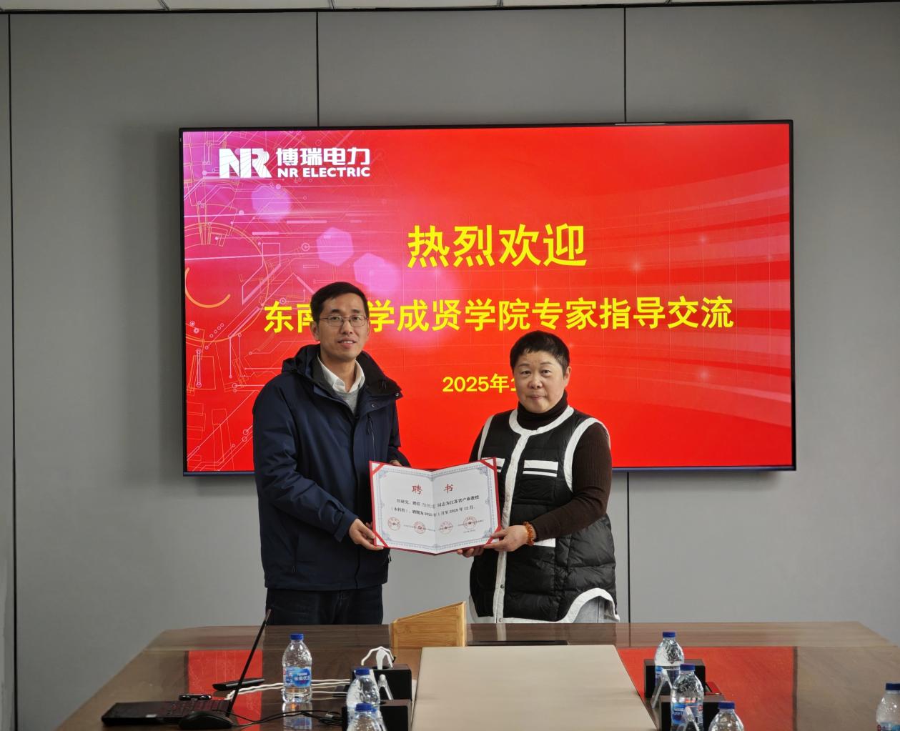 会上还举行了简朴而庄重的聘任仪式。许映秋院长代表学校向陆凯雷高级工程师颁发了“江苏省产业教授”聘书。陆凯雷教授表示,将积极履行产业教授职责,搭建校企双向交流平台,推动技术资源与教学资源相互转化,助力学生成长与产业发展。