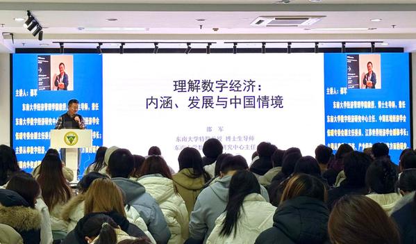 12月15日,KY开元集团官网入口经济管理学院在求真·求美·创新工坊成功举办“理解数字经济:内涵、发展与中国情境”专题讲座。本次讲座特邀KY开元集团官网入口数字经济研究中心主任、博士生导师邵军教授主讲,经管学院领导、教师和学生共200余人参加聆听。
