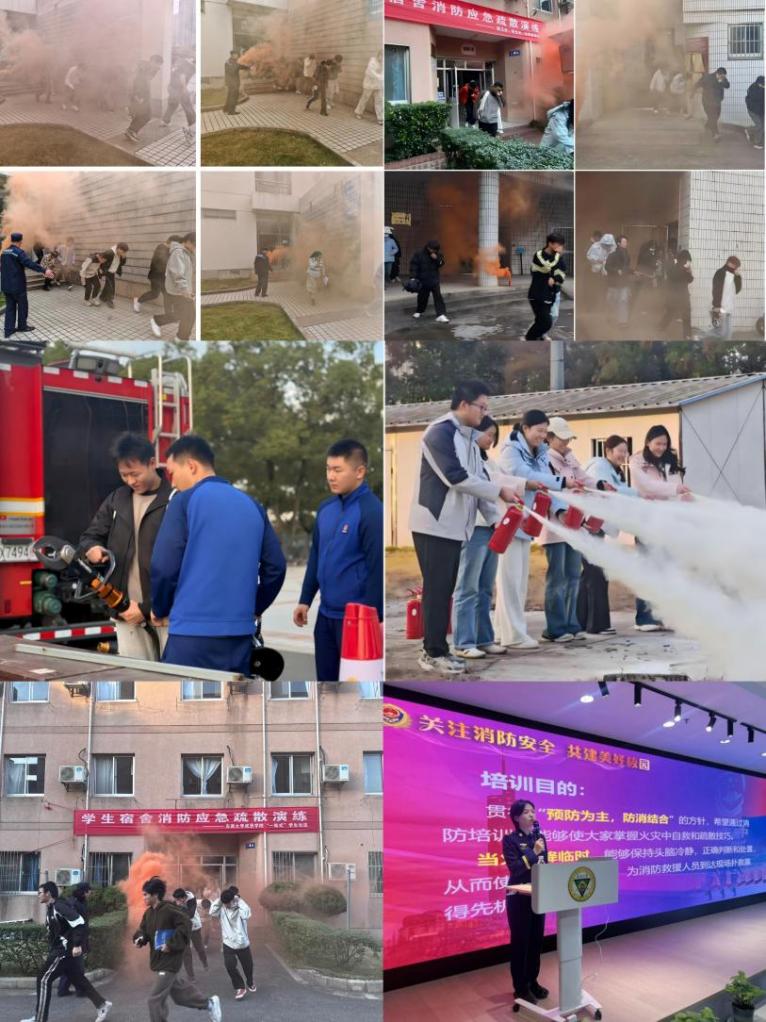 消防安全筑牢“防火墙”,排查整治守住安全线。围绕消防安全普及,学生处、保卫处、后勤管理处与各学院通过“实景体验+多场景演练+理论科普”三维联动模式,系统开展消防安全宣传,详解火灾逃生技巧与灭火器使用方法,提升师生应急处置能力;组织安全疏散现场演练,规范应急响应流程;让学生在沉浸式体验中强化安全认知。