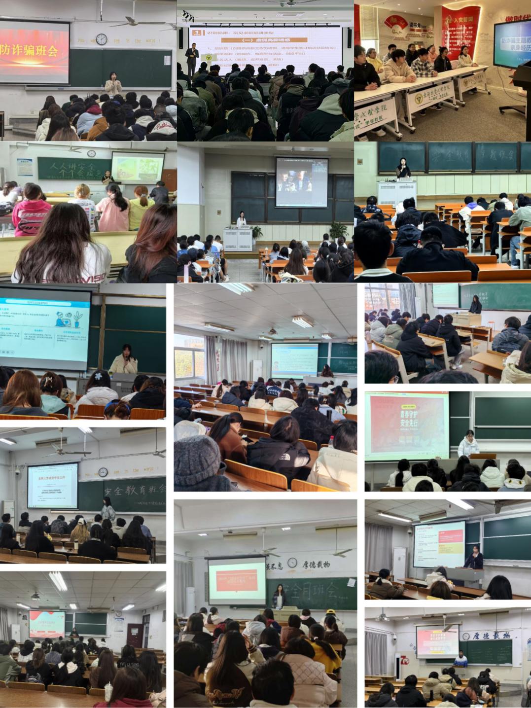 针对防范校园电信网络诈骗,各学院精准施策开展反诈宣传。制药与化学工程学院举办“校园反诈守护校园钱袋子”主题教育活动,邀请学生分享反诈亲身经历,强化“不轻信、不转账、多核实”的安全意识;经济管理学院将反诈教育与专业特色结合,借助金融节活动走进“一站式”学生社区,解析网络诈骗、金融诈骗等常见陷阱,并组织师生集中观看反诈视频;电子与计算机工程学院、土木与交通工程学院重点讲解培训贷、刷单返利、挂名法人等求职陷阱,帮助毕业生规避法律风险。