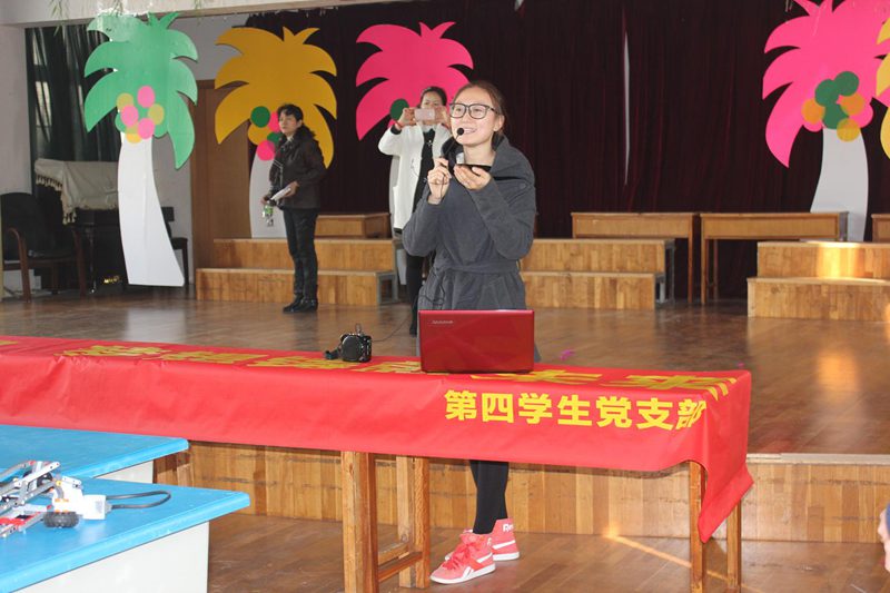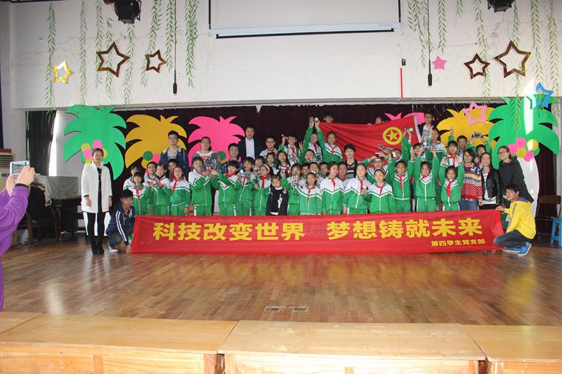 12月26日下午14:30分,必赢国际437官网第四学生党支部在海口市新南国外国语学校景山分校举办了以“科技改变世界?梦想铸就未来”为主题的实践活动。出席此次活动的有必赢国际437官网团委书记崔万春老师,第四学生党支部书记崔建兵老师,第四学生党支部科技梦想服务员15名成员,参加此次活动的有新南国外国语学校景山分校小学近60名师生。