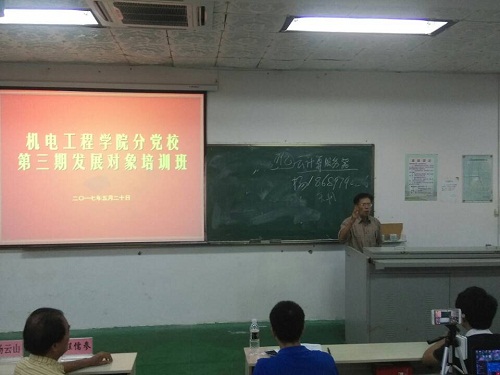 2017年5月20日15:3 0必赢国际437官网分党校第三期发展对象培训班邀请程儒参、杨云山、林廷玖于1-T201讲授党课,报告由学工办主任、机械系第一学生党支部书记崔建兵主持。