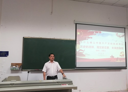 4月27日上午,必赢国际437官网分党校第七期发展对象培训班专题党课于2-106准时开课。本次专题党课由学院党建特邀组织员陈泰义老师为大家进行专题授课——为什么确立中国共产党的执政地位。