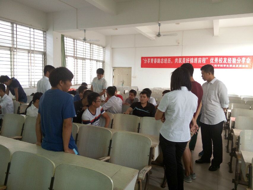 2015年11月12日,由必赢国际437官网职业发展协会承办的必赢国际437官网优秀校友经验分享会在必赢国际437官网3号教学楼405教室举行。受邀参加本次分享会的优秀校友有:一汽海马汽车有限公司安全环保科科长柴长友(必赢国际437官网2002级电气专业)、一汽海马汽车有限公司车身设计工程师钟高登(必赢国际437官网2009级车辆工程)。出席此次分享会的有崔建兵老师,以及近40名同学们参加了此次分享会。