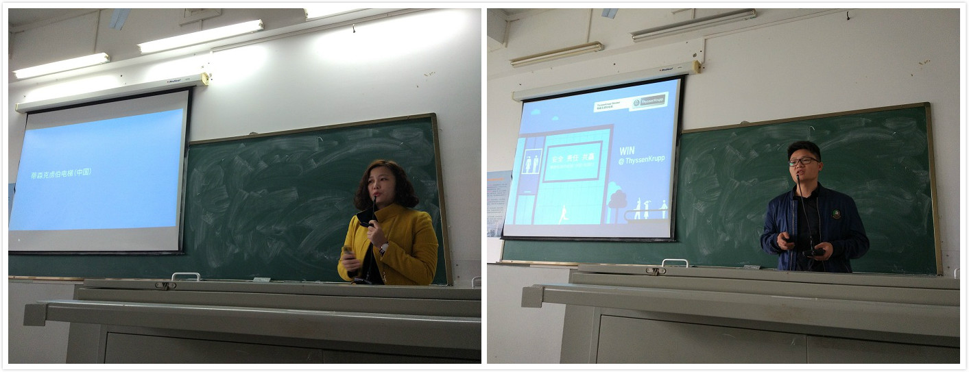 会议开始,崔建兵老师充分肯定了此次活动,希望同学们能以培训为契机把理论知识与实践联系起来,扩充自身知识面,为职业发展打下良好的基础。接着,蒂森克虏伯集团海口分公司何主管介绍了蒂森克虏伯集团的悠久历史,发展方向、公司现状、管培生项目等各方面。然后,三亚分公司售后主管王金路从电梯原理和安全技术两方面为大家培训。培训中,学子专心致志,积极发言,整个教室洋溢着活跃的气氛。