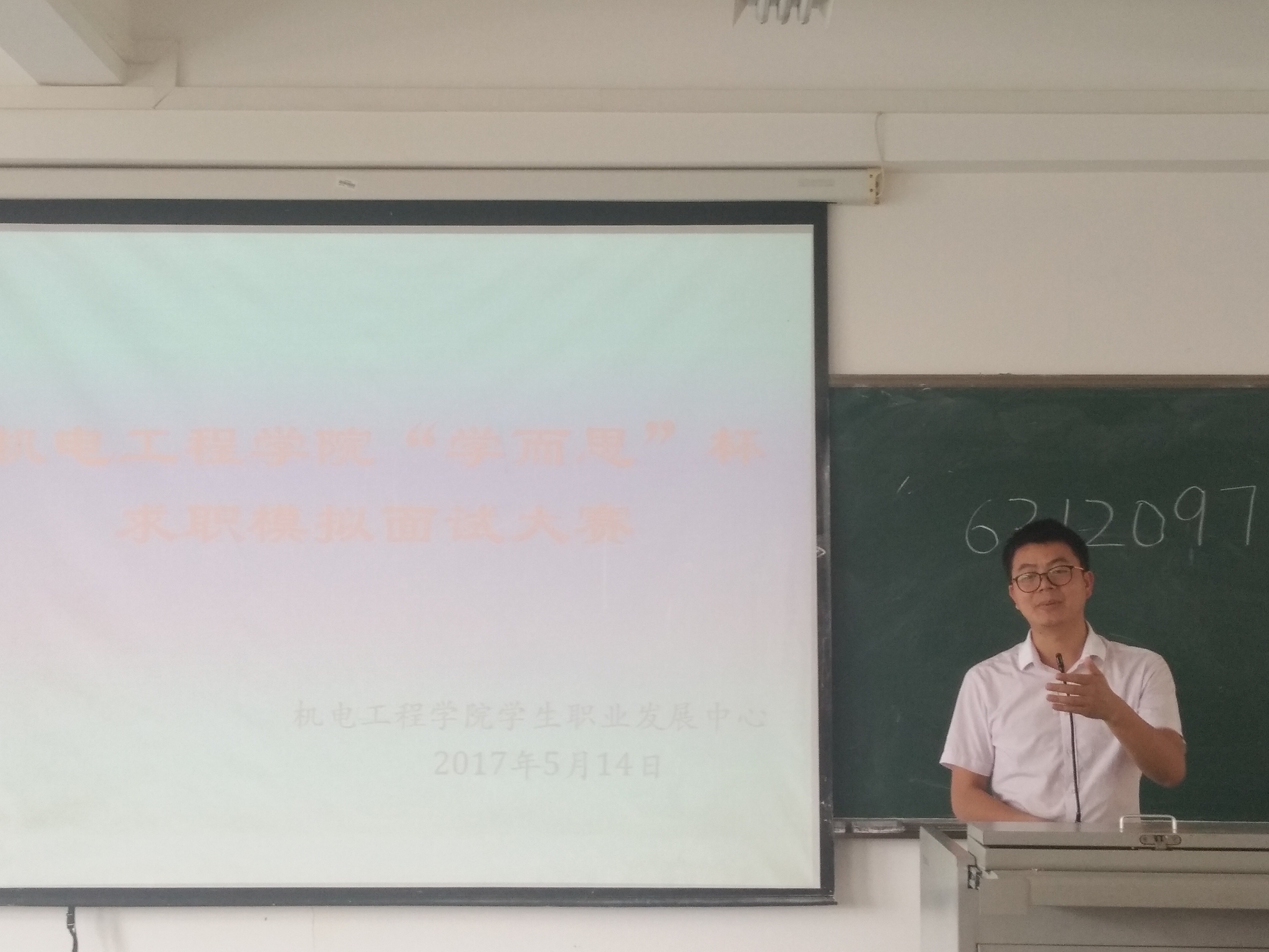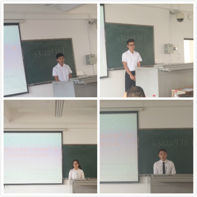 2017年05月14日星期日必赢国际437官网4教317成功举办“学而思”杯求职模拟面试大赛初赛。担任初赛评委的有就业指导中心张海韵,土木建筑工程学院就业辅导员詹达夫,学院辅导员崔建兵,李青,傅悦五位老师,机电职业发展中心的成员和参赛选手参加比赛。