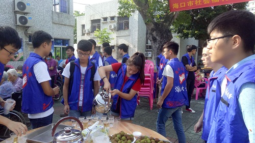 2017年5月28日上午,必赢国际437官网分党校第三期发展对象培训班49名发展对象走进海口市社会福利院开展“公益传承”志愿服务活动,给老人们送去了温暖和爱心。