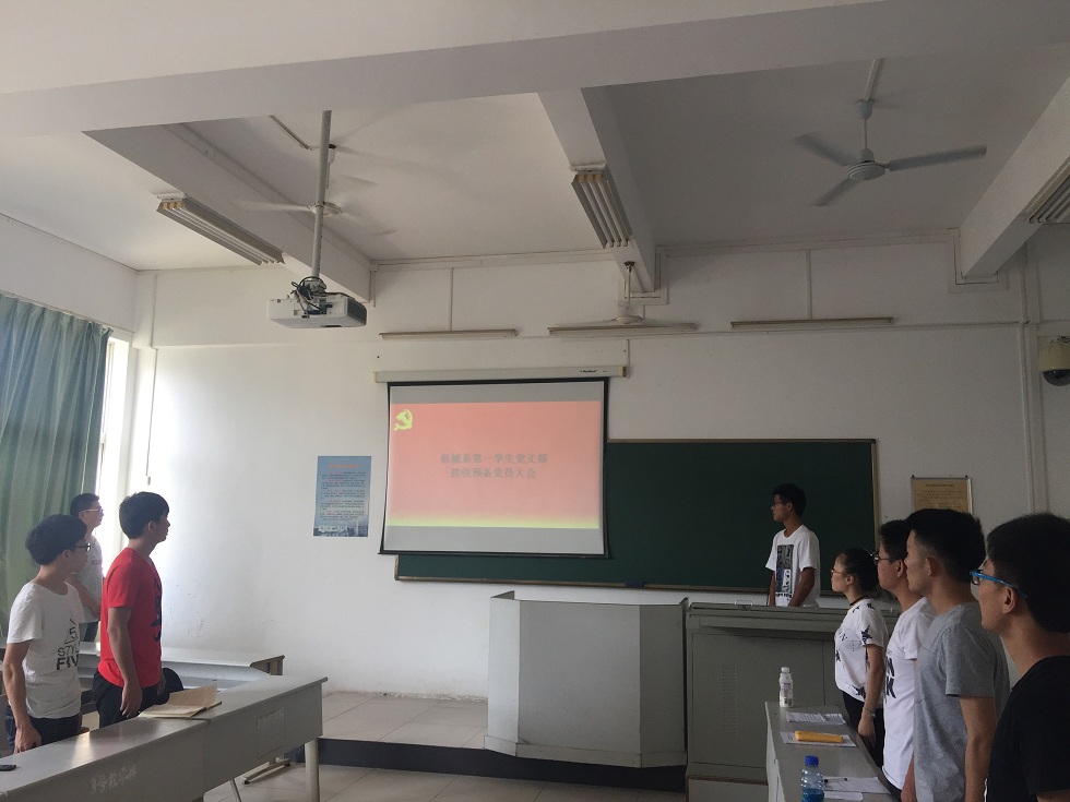 2017年6月2日下午,机械系第一学生党支部于3-202预备党员发展大会顺利举行。支部全体党员、预备党员参加,会议由支部宣传委员朱云超主持。