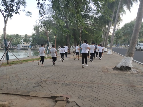本次活动,时光者以东门湖畔为集合点,首先由时光者指导老师崔建兵向第二期时光者弘毅计划中有突出表现的个人颁发奖品奖品,拍照留念。接着,时光者迈着整齐划一的步伐绕着东坡湖开始跑步,落日的余晖衬托着我们热爱运动的热情,跃动的脚步正是我们青春的见证。此次活动不仅仅是一项跑步运动,更是一场运动风尚的宣传,时光者的跑步活动将这种风尚带到校园,点燃了学校的运动热情,呼吁当代大学生养成热爱运动的好习惯。同时,环绕东坡湖使时光者们更加团结,提高了团队内部的凝聚力,这为今后体育活动的开展提供更够的氛围。