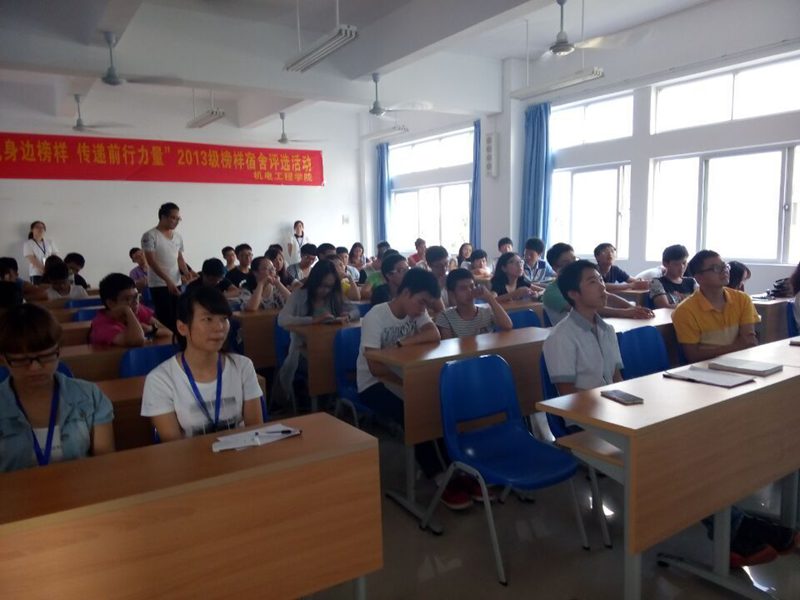 寻找身边榜样,传递前行力量。为推进优秀宿舍文化建设,树立优秀宿舍典型作为学习的榜样,2013级学生工作委员会举办本次榜样宿舍评选活动,其中六个先进宿舍脱颖而出。活动现场,宿舍代表们首先依次上台分别就宿舍在环境卫生、学习以及其他方面所制定的公约及采取的行动等进行了精彩的解说和展示。来自农业机械化及其自动化专业的13#338成员作为宿舍代表,用激情而幽默的语言讲述了他们不平凡的事迹:他们不仅成绩优秀,获奖无数,作为学生干部,也积极参加了学校及学院各项活动。最让人影响深刻的是他们精彩的视频展示。其他宿舍的展示也毫不逊色,博得台下的阵阵掌声,让人感受到团结奋进、朝气蓬勃、温暖和谐的集体。最后,辅导员为获奖的宿舍颁发奖状。其中自动化专业25#202宿舍、204宿舍以及电气工程及其自动化2班25#205宿舍获得了“服务型宿舍”的称号。机械设计制造及其自动化2班13#447宿舍获得了“学习型宿舍”称号。农业机械化及其自动化13#338宿舍、电气工程及其自动化2班25#214获得了“学习、服务型宿舍”称号。