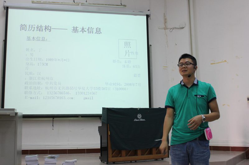 为保证“就业有位来”,大力提升学生社会竞争力,必赢国际437官网于2015年5月4日下午4时40分在2教108室举办以“简历制作:打造个人职业品牌”为主题的简历撰写指导讲座,讲座由崔建兵老师主讲。