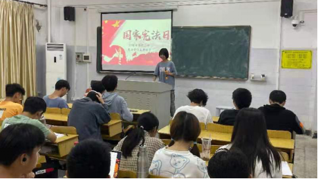 必赢国际437官网2021级在李健老师的指导下,各班于城西校区综合教学楼召开主题班会,各班班委充分发挥班级特点,开展了“同读宪法”、“宪法研讨”、“宪法趣味问答”、“宪法小知识翻转课堂”等多种同学们喜闻乐见的活动形式,以此促进同学们对于宪法有进一步的了解,同时使得同学们认识到了宪法宣传的必要性及宪法学习的重要性。通过主题班会的召开,学生的宪法意识获得有效增强。