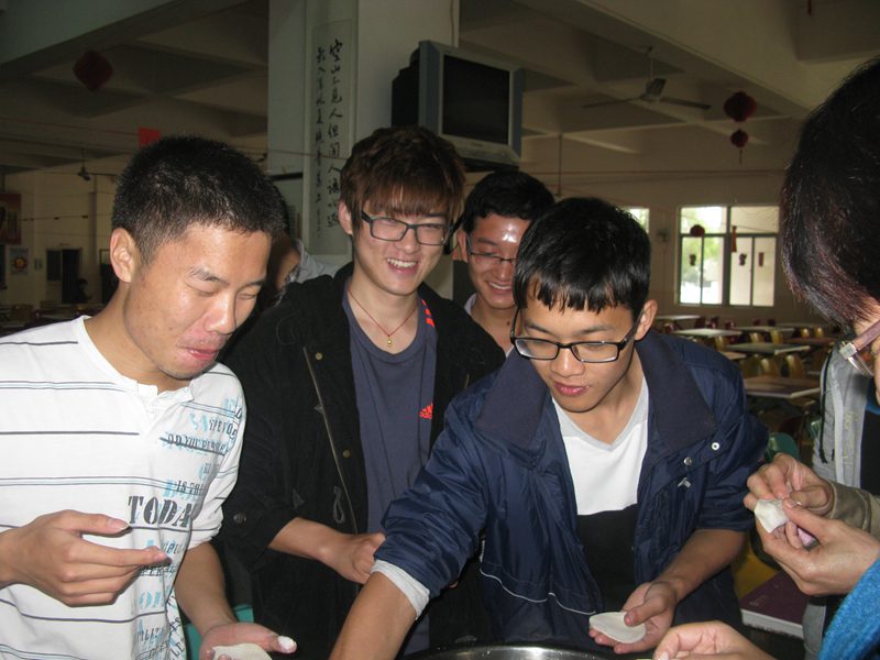 黄国标副书记、陈秀妍主任和学生一起包饺子