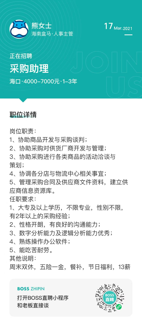 海南盒马招聘信息